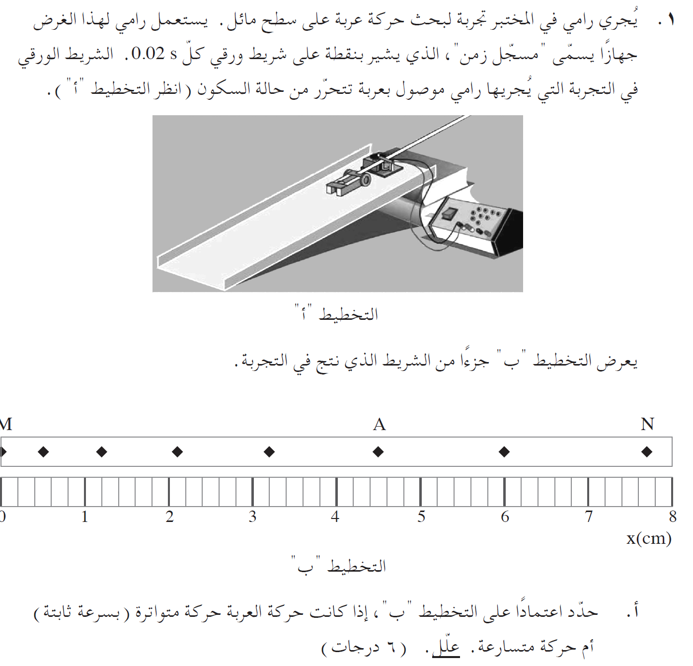 لا تظهر النقطة P (النقطة التاسعة) في الرسم التخطيطي ، لكننا نعلم أنه حتى في لحظة طباعة النقطة P ، تتحرك العربة بتسارع 5 أمتار لكل ثانية مربعة. تمت طباعة النقطة بعد 0.04 ثانية من طباعة النقطة السابعة.