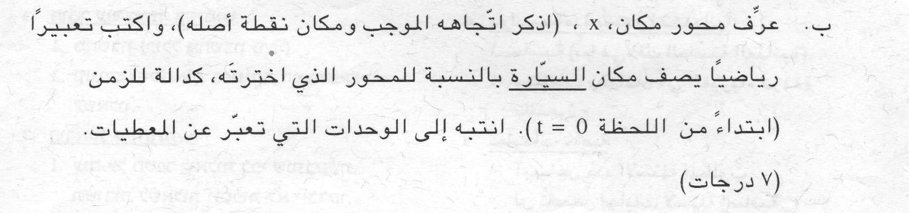 سنكتب تعبير الموقع كدالة للزمن لحركة الدراجة النارية. بالنسبة للمحور المحدد في القسم ب: