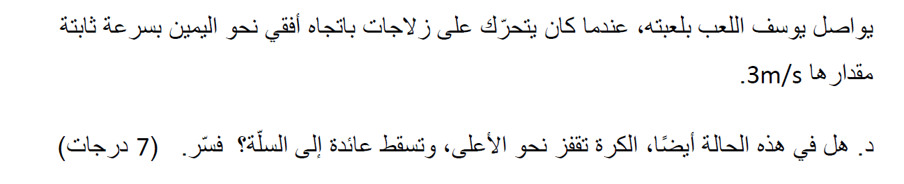 يتم رمي الكرة عندما يتحرك يوسي في اتجاه أفقي. سرعة الكرة الأفقية تساوي سرعة يوسي.