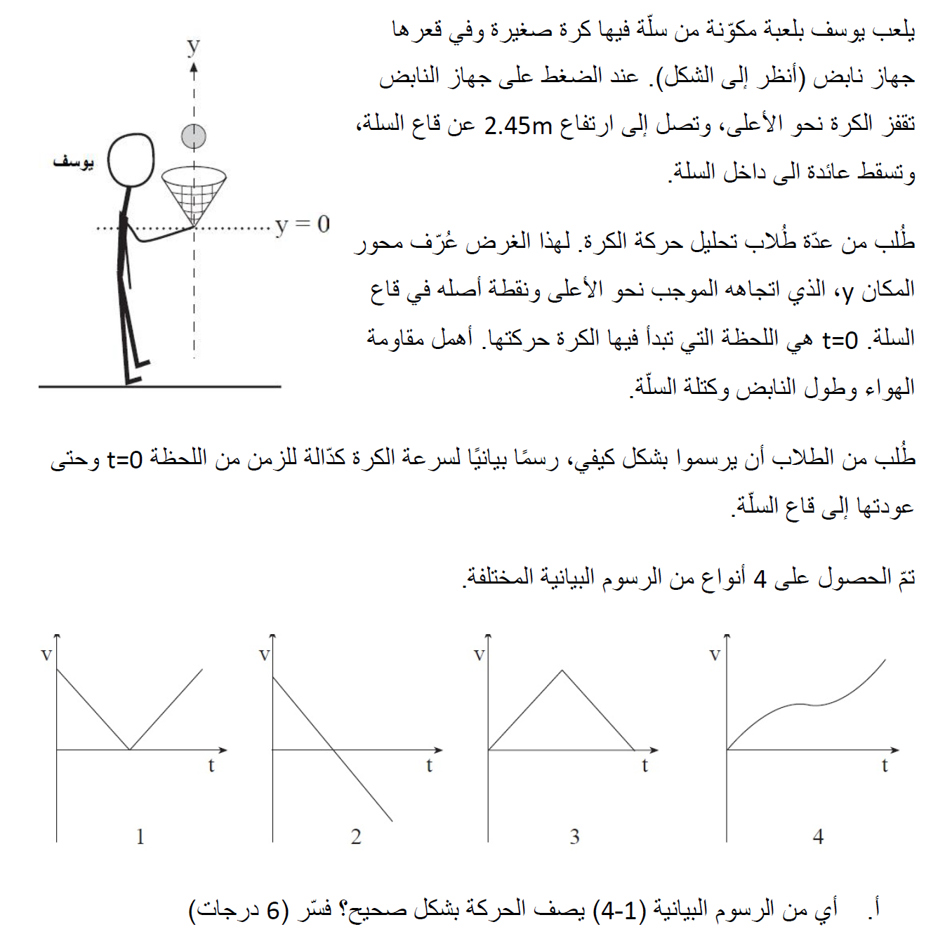 وبالتالي ، فإن الرسم البياني الوحيد الذي يتلاءم مع حركة الكرة هو الرسم البياني 7.