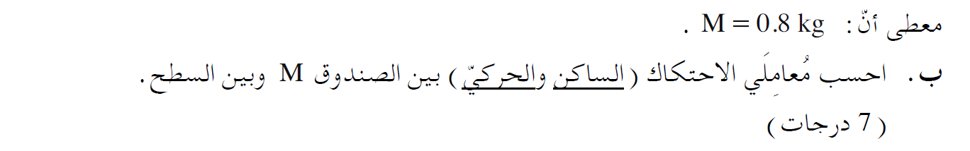 5. 2017,2 - منظومة مكوّنة من جسمين أحدهما على سطح أفقي