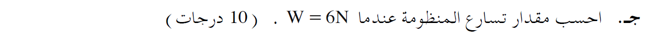التعبير عن قوة الشد التي تم الحصول عليها من معادلة حركة السلة عندما تتحرك المنظومة بتسارع هو: