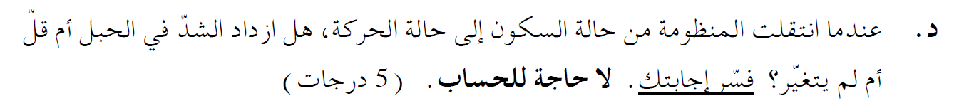 والتعبير عن قوة الشد عندما تكون المنظومة ساكنة بسبب الاحتكاك الساكن هو: