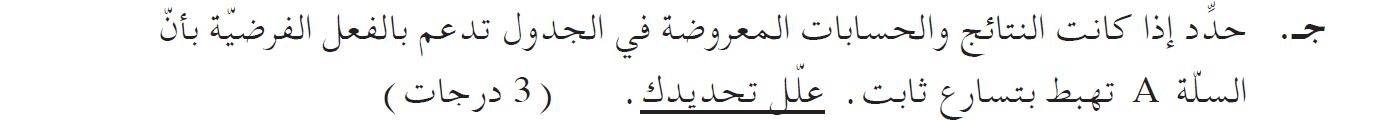 قام الطلاب بقياس ارتفاع السلة A فوق سطح الأرض h ، وزمن حركة السلة من هذا الارتفاع t.