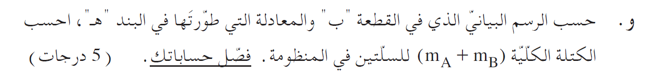 نعبّر عن التسارع من معادلة الحركة للسلة A : «math xmlns=¨http://www.w3.org/1998/Math/MathML¨»«mo mathvariant=¨bold¨ mathcolor=¨#0000FF¨»§#160;«/mo»«mo mathvariant=¨bold¨ mathcolor=¨#0000FF¨»§#160;«/mo»«mo mathvariant=¨bold¨ mathcolor=¨#0000FF¨»§#160;«/mo»«mo mathvariant=¨bold¨ mathcolor=¨#0000FF¨»§#160;«/mo»«mo mathvariant=¨bold¨ mathcolor=¨#0000FF¨»§#160;«/mo»«mo mathvariant=¨bold¨ mathcolor=¨#0000FF¨»§#160;«/mo»«mo mathvariant=¨bold¨ mathcolor=¨#0000FF¨»§#160;«/mo»«mo mathvariant=¨bold¨ mathcolor=¨#0000FF¨»§#160;«/mo»«mo mathvariant=¨bold¨ mathcolor=¨#0000FF¨»§#160;«/mo»«mo mathvariant=¨bold¨ mathcolor=¨#0000FF¨»§#160;«/mo»«mo mathvariant=¨bold¨ mathcolor=¨#0000FF¨»§#160;«/mo»«mo mathvariant=¨bold¨ mathcolor=¨#0000FF¨»§#160;«/mo»«mo mathvariant=¨bold¨ mathcolor=¨#0000FF¨»§#160;«/mo»«mo mathvariant=¨bold¨ mathcolor=¨#0000FF¨»§#160;«/mo»«mo mathvariant=¨bold¨ mathcolor=¨#0000FF¨»§#160;«/mo»«mo mathvariant=¨bold¨ mathcolor=¨#0000FF¨»§#160;«/mo»«mo mathvariant=¨bold¨ mathcolor=¨#0000FF¨»§#160;«/mo»«mo mathvariant=¨bold¨ mathcolor=¨#0000FF¨»§#160;«/mo»«mo mathvariant=¨bold¨ mathcolor=¨#0000FF¨»§#160;«/mo»«mo mathvariant=¨bold¨ mathcolor=¨#0000FF¨»§#160;«/mo»«mo mathvariant=¨bold¨ mathcolor=¨#0000FF¨»§#160;«/mo»«mo mathvariant=¨bold¨ mathcolor=¨#0000FF¨»§#160;«/mo»«mo mathvariant=¨bold¨ mathcolor=¨#0000FF¨»§#160;«/mo»«mo mathvariant=¨bold¨ mathcolor=¨#0000FF¨»§#160;«/mo»«mo mathvariant=¨bold¨ mathcolor=¨#0000FF¨»§#160;«/mo»«mo mathvariant=¨bold¨ mathcolor=¨#0000FF¨»§#160;«/mo»«mo mathvariant=¨bold¨ mathcolor=¨#0000FF¨»§#160;«/mo»«mo mathvariant=¨bold¨ mathcolor=¨#0000FF¨»§#160;«/mo»«mo mathvariant=¨bold¨ mathcolor=¨#0000FF¨»§#160;«/mo»«mo mathvariant=¨bold¨ mathcolor=¨#0000FF¨»§#160;«/mo»«mo mathvariant=¨bold¨ mathcolor=¨#0000FF¨»§#160;«/mo»«mo mathvariant=¨bold¨ mathcolor=¨#0000FF¨»§#160;«/mo»«mo mathvariant=¨bold¨ mathcolor=¨#0000FF¨»§#160;«/mo»«mo mathvariant=¨bold¨ mathcolor=¨#0000FF¨»§#160;«/mo»«mo mathvariant=¨bold¨ mathcolor=¨#0000FF¨»§#160;«/mo»«mo mathvariant=¨bold¨ mathcolor=¨#0000FF¨»§#160;«/mo»«mo mathvariant=¨bold¨ mathcolor=¨#0000FF¨»§#160;«/mo»«mo mathvariant=¨bold¨ mathcolor=¨#0000FF¨»§#160;«/mo»«mo mathvariant=¨bold¨ mathcolor=¨#0000FF¨»§#160;«/mo»«mo mathvariant=¨bold¨ mathcolor=¨#0000FF¨»§#160;«/mo»«mo mathvariant=¨bold¨ mathcolor=¨#0000FF¨»§#160;«/mo»«mo mathvariant=¨bold¨ mathcolor=¨#0000FF¨»§#160;«/mo»«mo mathvariant=¨bold¨ mathcolor=¨#0000FF¨»§#160;«/mo»«mo mathvariant=¨bold¨ mathcolor=¨#0000FF¨»§#160;«/mo»«mo mathvariant=¨bold¨ mathcolor=¨#0000FF¨»§#160;«/mo»«mo mathvariant=¨bold¨ mathcolor=¨#0000FF¨»§#160;«/mo»«mo mathvariant=¨bold¨ mathcolor=¨#0000FF¨»§#160;«/mo»«mspace linebreak=¨newline¨»«/mspace»«menclose mathcolor=¨#0000FF¨ notation=¨box¨»«msub»«mi mathvariant=¨bold¨»m«/mi»«mi mathvariant=¨bold¨»A«/mi»«/msub»«mo mathvariant=¨bold¨»§#183;«/mo»«mi mathvariant=¨bold¨»g«/mi»«mo mathvariant=¨bold¨»-«/mo»«mi mathvariant=¨bold¨»T«/mi»«mo mathvariant=¨bold¨»=«/mo»«msub»«mi mathvariant=¨bold¨»m«/mi»«mi mathvariant=¨bold¨»A«/mi»«/msub»«mo mathvariant=¨bold¨»§#183;«/mo»«mi mathvariant=¨bold¨»a«/mi»«/menclose»«mo»§#160;«/mo»«mo»§#160;«/mo»«mo»§#160;«/mo»«mo mathvariant=¨bold¨ mathcolor=¨#0000FF¨»§#8658;«/mo»«mo»§#160;«/mo»«mo»§#160;«/mo»«mi mathvariant=¨bold¨ mathcolor=¨#0000FF¨»T«/mi»«mo mathvariant=¨bold¨ mathcolor=¨#0000FF¨»=«/mo»«mo»§#160;«/mo»«msub mathcolor=¨#0000FF¨»«mi mathvariant=¨bold¨ mathcolor=¨#0000FF¨»m«/mi»«mi mathvariant=¨bold¨»A«/mi»«/msub»«mo mathvariant=¨bold¨ mathcolor=¨#0000FF¨»§#183;«/mo»«mi mathvariant=¨bold¨ mathcolor=¨#0000FF¨»g«/mi»«mo mathvariant=¨bold¨ mathcolor=¨#0000FF¨»-«/mo»«msub mathcolor=¨#0000FF¨»«mi mathvariant=¨bold¨ mathcolor=¨#0000FF¨»m«/mi»«mi mathvariant=¨bold¨»A«/mi»«/msub»«mo mathvariant=¨bold¨ mathcolor=¨#0000FF¨»§#183;«/mo»«mi mathvariant=¨bold¨ mathcolor=¨#0000FF¨»a«/mi»«mspace linebreak=¨newline¨»«/mspace»«/math»