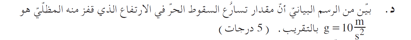 من ميل الرسم البياني في الثانية الأولى: «math xmlns=¨http://www.w3.org/1998/Math/MathML¨»«mi mathvariant=¨bold¨»a«/mi»«mo mathvariant=¨bold¨»=«/mo»«mn mathvariant=¨bold¨»10«/mn»«mfrac»«mi mathvariant=¨bold¨»m«/mi»«msup»«mi mathvariant=¨bold¨»s«/mi»«mn mathvariant=¨bold¨»2«/mn»«/msup»«/mfrac»«/math» .