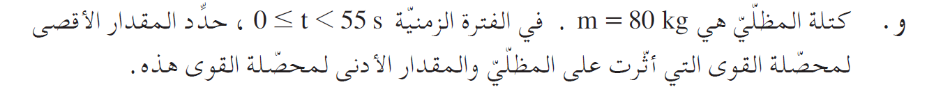 نحسب أكبر محصلة قوى مؤثرة على المظلي، حسب أقصى تسارع: