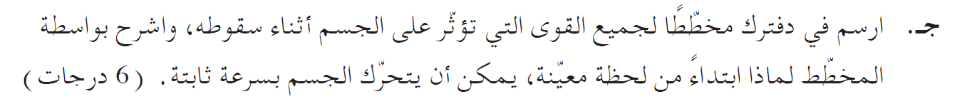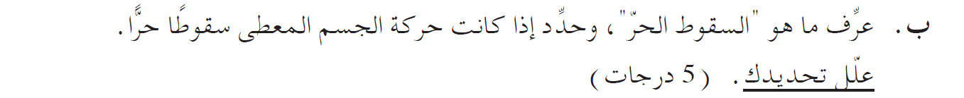 2. لم يتم كتابته لتحديد القيم على محور السرعة، ولكن للحصول على كامل نقاط في القسم، يجب تحديد قيمة السرعة الثابتة التي وصل إليها الجسم.