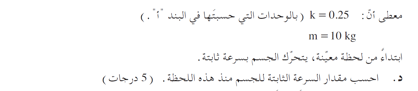 لذلك ، فإن مقدار سرعة الجسم في اللحظة التي يتحرك فيها الجسم بسرعة ثابتة مساوية 20 مترًا في الثانية.