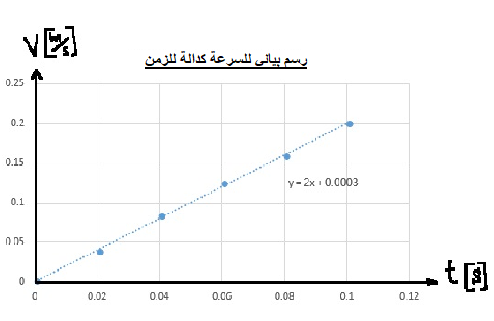 وفقًا للقياسات ، في لحظة انقطاع الخيط عندما تكون t = 0.1s ، تكون سرعة الجسم 0.2 متر في الثانية.