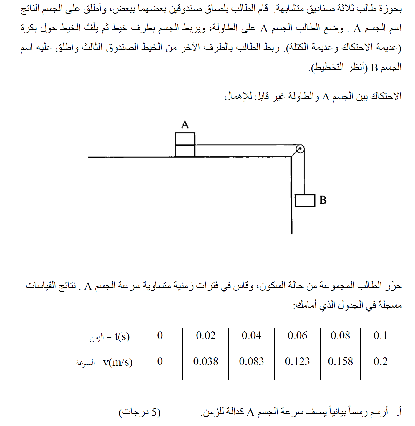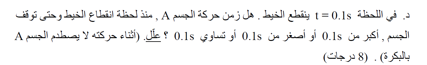زمن حركة الجسم A ، من لحظة انقطاع الخيط حتى توقف الجسم ، يساوي 0.1 ثانية.
