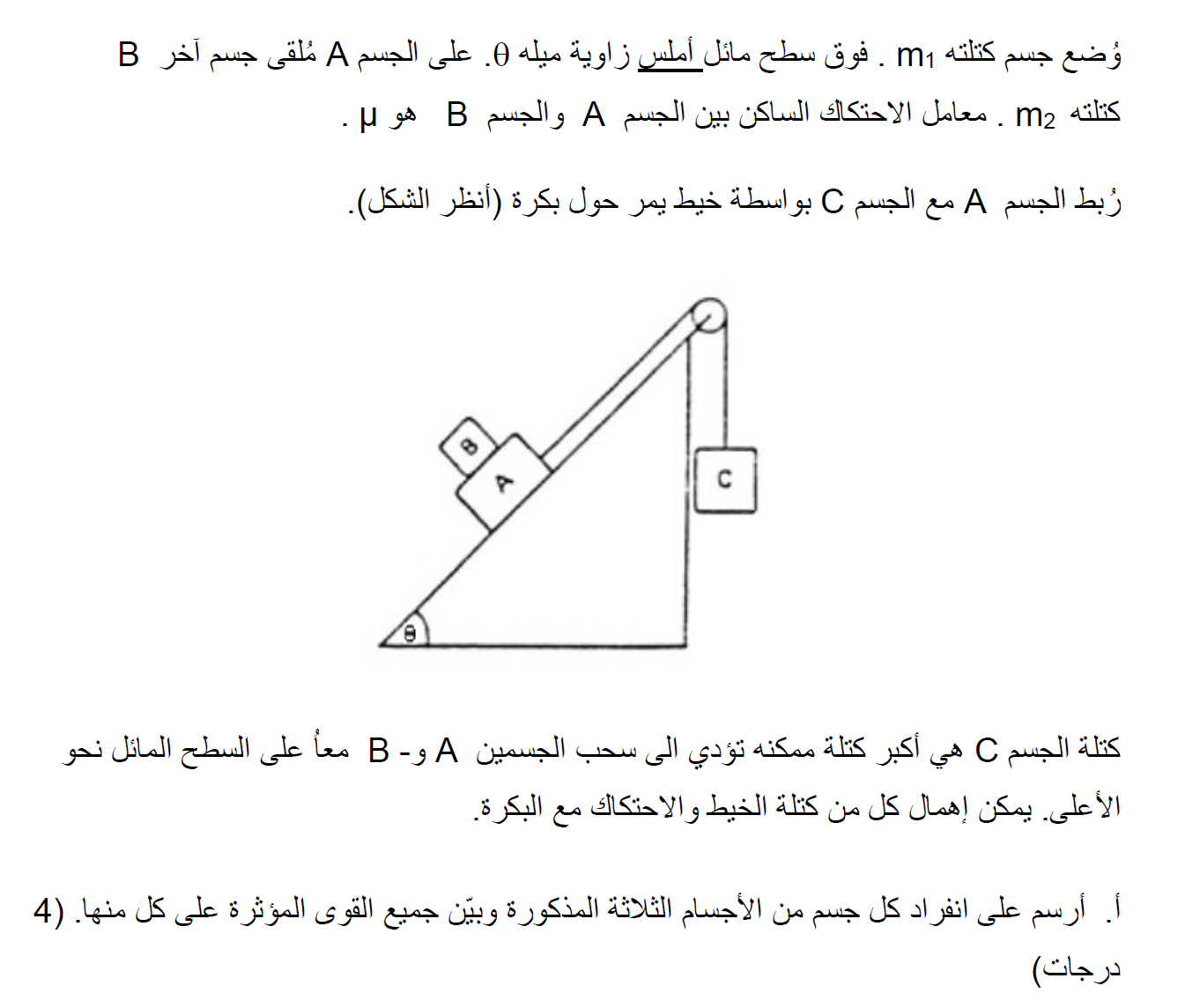 يتعامل السؤال مع الحالة التي تكون فيها كتلة الجسم C تحرك الأجسام بهذا التسارع الأقصى.