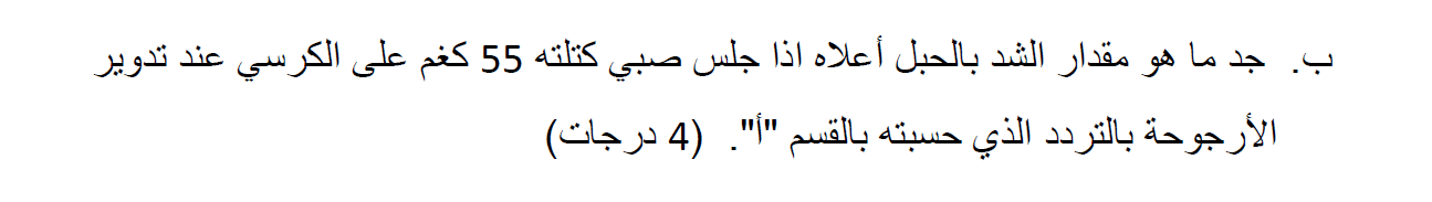 وزن الكرسي والقوة التي يشغّلها الصبي على الكرسي لأسفل (هذه القوة تساوي وزن الصبي).