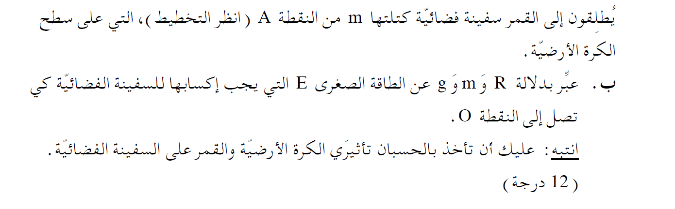 نجد الحد الطاقة الصغرى التي يجب إكسابها للسفينة الفضائية كي تتحرك من النقطة A إلى النقطة O.