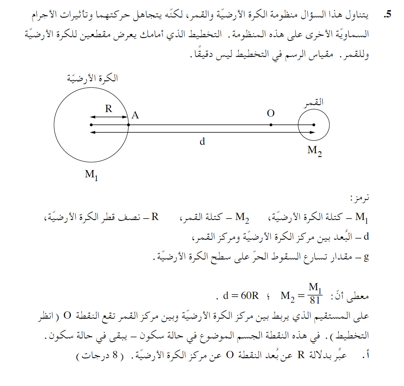 للتعبير عن البعد X ابدلالة نصف قطر الكرة الأرضية R. سوف نعبر عن d بدلالة R. و m2 بدلالة m1: