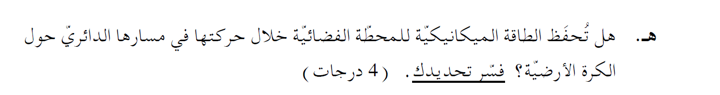 الخيار ب - الارتفاع لا يتغير، وبالتالي فإن نصف قطر المسار ثابت، من التعبير عن طاقة المحطة الفضائية، الطاقة الحركية ثابتة والوضعية ثابتة.