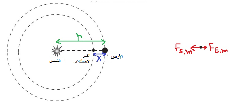 والشمس بالضرورة أكبر من قوة الجاذبية بين القمر الاصطناعي والكرة الأرضية. يجب
