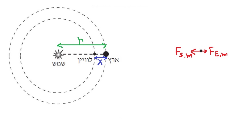 2. כדי שהלוויין ינוע בתנועה מעגלית חייב לפעול עליו כוח צנטריפטאלי לכיוון נקודת מרכז הסיבוב, לכן בהכרח כוח הכבידה בין הלוויין לשמש גדול מכוח הכבידה בין הלוויין לכדור הארץ. יש לכתוב בהתאם את הכוח השקול במשוואת התנועה.