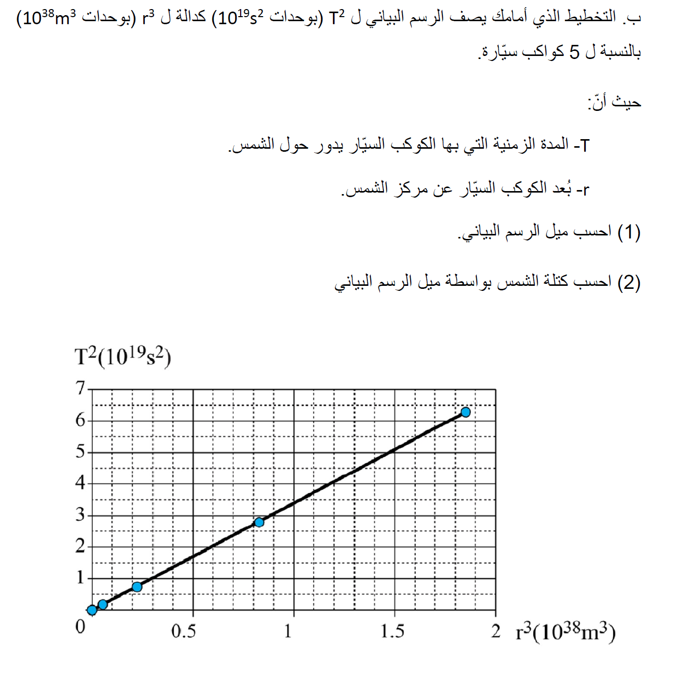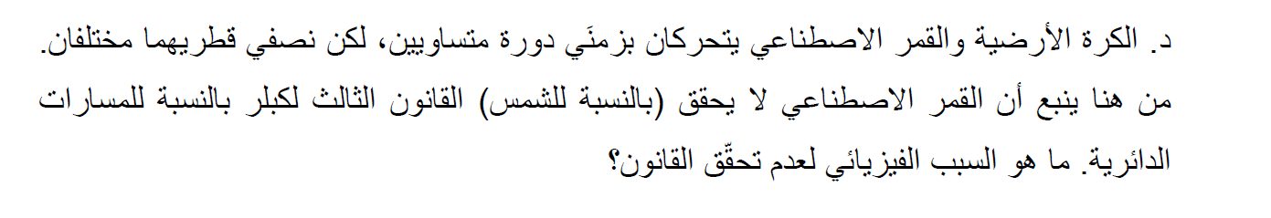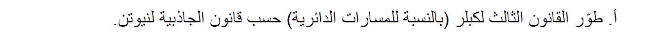 1. في القسم "أ" ، يجب تطوير القانون الثالث لكبلر، فالطالب الذي يجيب على القسم "أ" يفهم سبب تحقُّق القانون الثالث.