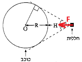 القوة الوحيدة المؤثرة على السفينة الفضائية هي قوة الجاذبية التي يشغّلها الكوكب على السفينة الفضائية.