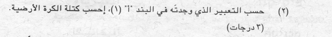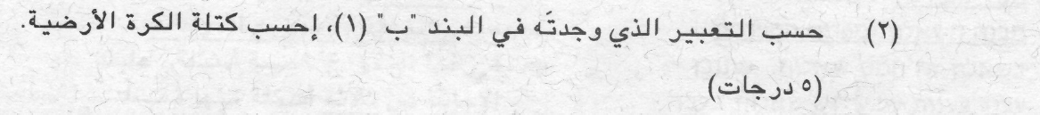 نعوّض المعطيات المعطاة في بداية السؤال في التعبير الذي طوّرناه في القسم السابق ، ونجد كتلة الكرة الأرضية.