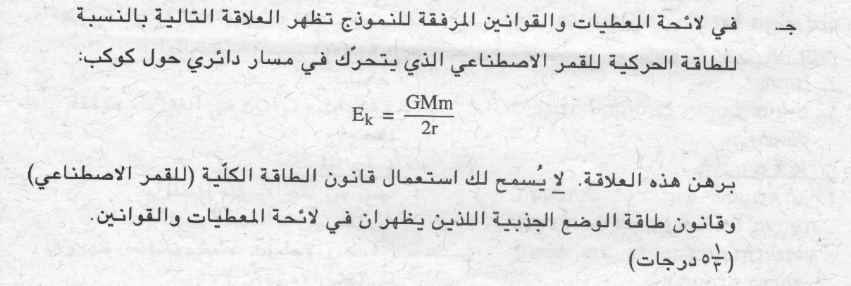 كتابة معادلة حركة القمر الاصطناعي. وإيجاد تعبير الطاقة الحركية من المعادلة.