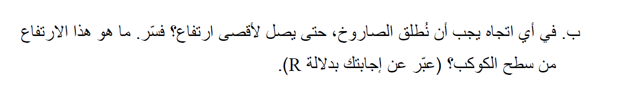 يجب أن يكون اتجاه إطلاق الصاروخ لأعلى ، متعامدًا لسطح الأرض ، بحيث تكون الطاقة الحركية في قمة الارتفاع صفراً وتكون طاقة الارتفاع القصوى.