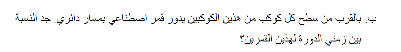 نشير إلى كتلة القمر الاصطناعي المتحرك حول الكوكب A بـ mA ، وكتلة القمر الاصطناعي المتحرك حول الكوكب B بـ mB.