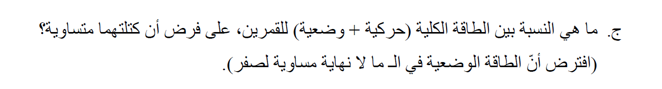 الكتلتين في النسبة بين الطاقتين لأنه مُعطى أن الكتلتين متساويتان.