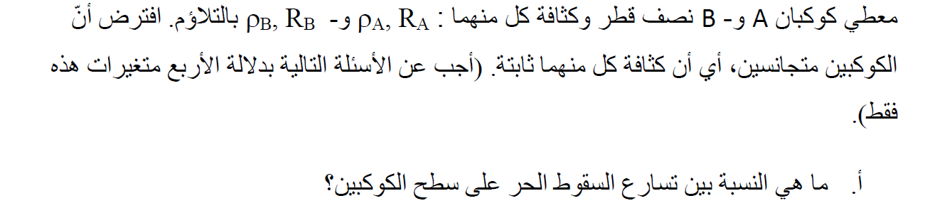 يجب التعبير عن نسبة التسارع بدلالة كثافة الكوكب وليس بدلالة كتلته.