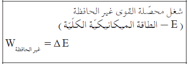 من مبادئ الميكانيكا، ينص التعبير عن شغل قوة غير حافظة على أن شغل القوة الغير حافظة يساوي التغير في الطاقة الميكانيكية. يظهر التعبير في صفحات القوانين: