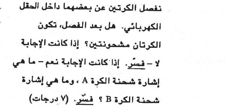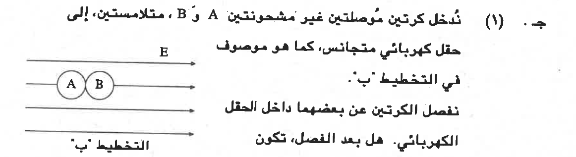 2. الكرتان موجودتان داخل الحقل وتكونان مستقطبان وغير مشحونتان. عندما يتم إخراجهما من داخل الحقل ستكونان غير مستقطبان وغير مشحونان.