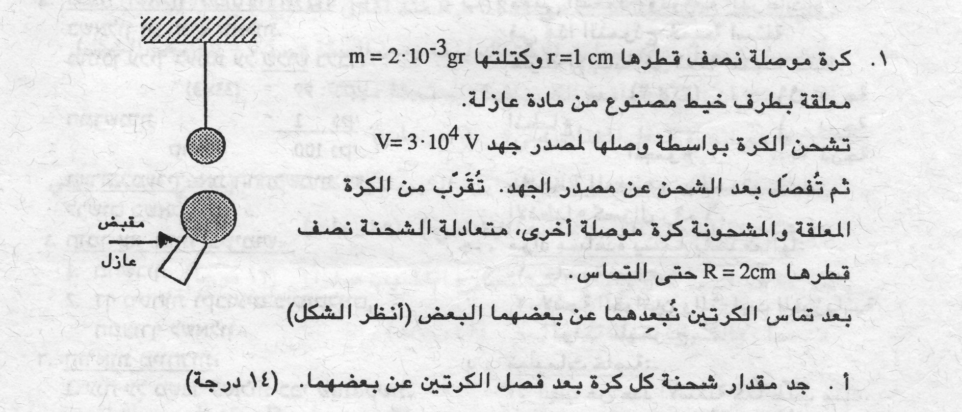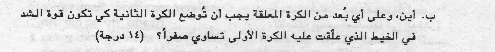 1. يجب إيجاد البُعد بين الكرتين حيث تكون قوة الشد صفراً، أي عندما تكون القوة الكهربائية المؤثرة على الكرة الصغيرة مساوية لوزنها.