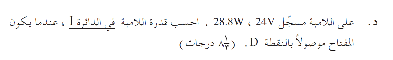 1. تصف الكتابة الموجود على المصباح فرق الجهد الكهربائي المخصص للمصباح والقدرة الكهربائية للمصباح عندما يكون موصولاً بفرق الجهد المخصص له.