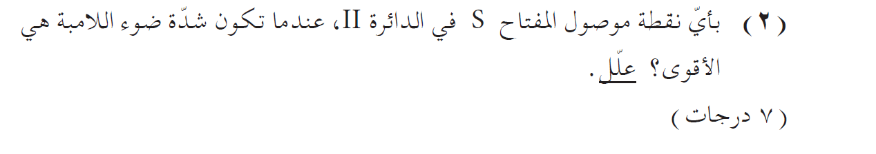 4. في كلتا الدائرتين، لكي تصل شدة الضوء إلى الحد الأقصى، يجب توصيل المفتاح بالنقطة S، وهذا لا يعني عدم وجود فرق بين طريقة التوصيل.