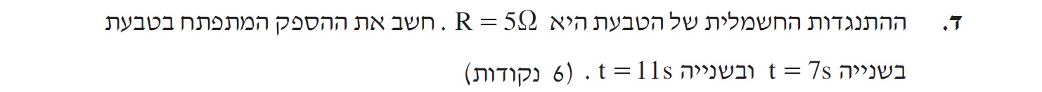 ברגע t=7s אין כא"מ מושרה בטבעת , וההספק המתפתח בטבעת הוא אפס וואט.