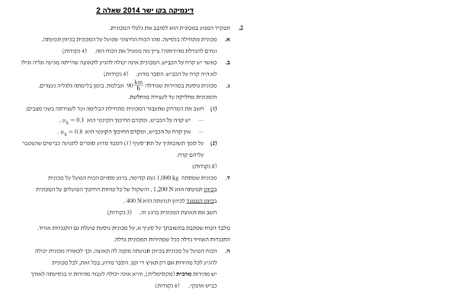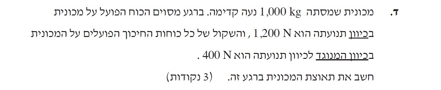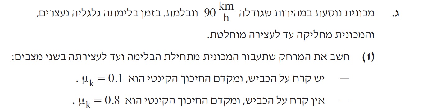 3. בזמן הבלימה גלגלי המכונית נעצרים, המכונית מחליקה על הכביש , לכן אפשר להשתמש בהגדרת כוח החיכוך הקינטי , מקדם החיכוך הנתון הוא של כוח החיכוך הקינטי.