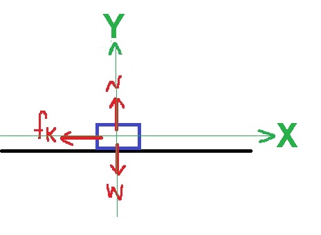 נערוך תרשים כוחות על המכונית נסמן את שקול כוחות החיכוך הפועלים בכיוון המנוגד ב 'fk, ואת הכוח הפועל בכיוון התנועה ב F: