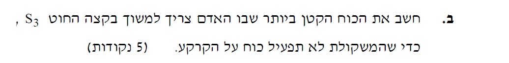 יש למצוא את הכוח שהמשקולת מפעילה על הקרקע, ממשוואת התנועה מצאנו את הכוח שהקרקע מפעילה על המשקולת .