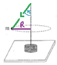נכתוב את משוואת התנועה המעגלית ביחס לציר רדיאלי , ואת משוואת התנועה האנכית ביחס לציר אנכי שכיוונו כלפי מעלה: