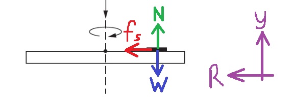 הכוח הצנטריפטאלי הוא כוח החיכוך הסטטי, נכתוב את משוואות התנועה:
