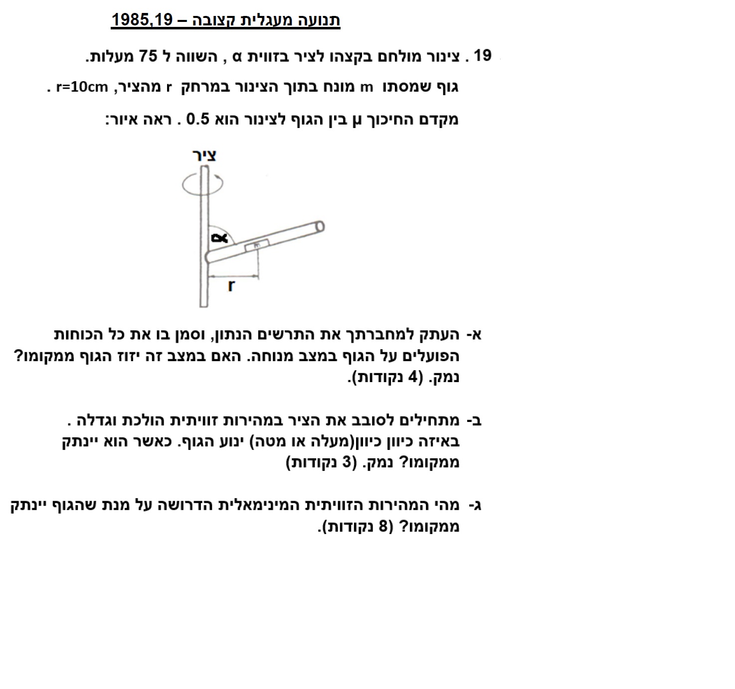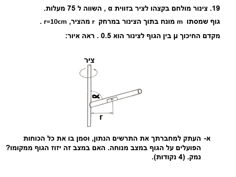 4. הגוף נמצא על מוט נטוי, אך מישור התנועה הוא אופקי