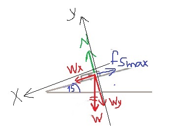 כדי שהגוף יזוז רכיב כוח הכובד WX צריך להיות גדול מכוח החיכוך הסטטי מקסימאלי: