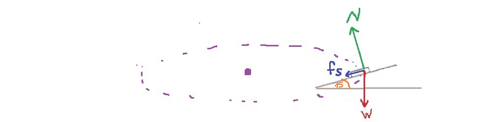 לכוח הכובד אין רכיב הפונה אל נקודת מרכז הסיבוב , לכוח הנורמל יש , וגם לכוח החיכוך הסטטי יש.