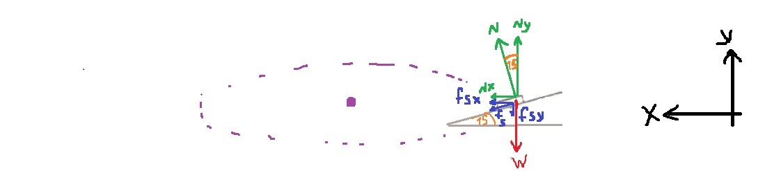 נבצע הפרדה ישרת זווית בהתאם למערכת צירים זו, לכוח הנורמל ולכוח החיכוך הסטטי: