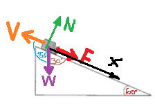 נבחר ציר אופקי x בכיוון מורד המישור.