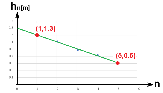 4. מביטוי הפונקציה המתוארת בגרף : «math xmlns=¨http://www.w3.org/1998/Math/MathML¨»«msub»«mi mathvariant=¨bold¨ mathcolor=¨#FF0000¨ mathsize=¨20px¨»h«/mi»«mi mathvariant=¨bold¨ mathsize=¨20px¨ mathcolor=¨#FF0000¨»n«/mi»«/msub»«mo mathvariant=¨bold¨ mathcolor=¨#FF0000¨ mathsize=¨20px¨»=«/mo»«msub»«mi mathvariant=¨bold¨ mathcolor=¨#FF0000¨ mathsize=¨20px¨»h«/mi»«mn mathvariant=¨bold¨ mathsize=¨20px¨ mathcolor=¨#FF0000¨»0«/mn»«/msub»«mo mathvariant=¨bold¨ mathcolor=¨#FF0000¨ mathsize=¨20px¨»-«/mo»«mn mathvariant=¨bold¨ mathcolor=¨#FF0000¨ mathsize=¨20px¨»2«/mn»«mo mathvariant=¨bold¨ mathcolor=¨#FF0000¨ mathsize=¨20px¨»§#183;«/mo»«mi mathvariant=¨bold¨ mathcolor=¨#FF0000¨ mathsize=¨20px¨»§#956;«/mi»«mo mathvariant=¨bold¨ mathcolor=¨#FF0000¨ mathsize=¨20px¨»§#183;«/mo»«mi mathvariant=¨bold¨ mathcolor=¨#FF0000¨ mathsize=¨20px¨»L«/mi»«mo mathvariant=¨bold¨ mathcolor=¨#FF0000¨ mathsize=¨20px¨»§#183;«/mo»«mi mathvariant=¨bold¨ mathcolor=¨#FF0000¨ mathsize=¨20px¨»n«/mi»«/math» ניתן לראות שכאשר n=0 (נקודת חיתוך עם הציר האנכי) ערך הפונקציה הוא h0.