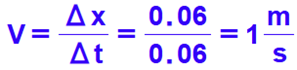 0.06 שניות. לכן ניתן לומר שהמכונית נע לאורך 0.06 מטרים במשך 0.06 שניות , נחשב את מהירות המכונית בעזרת הגדרת המהירות.