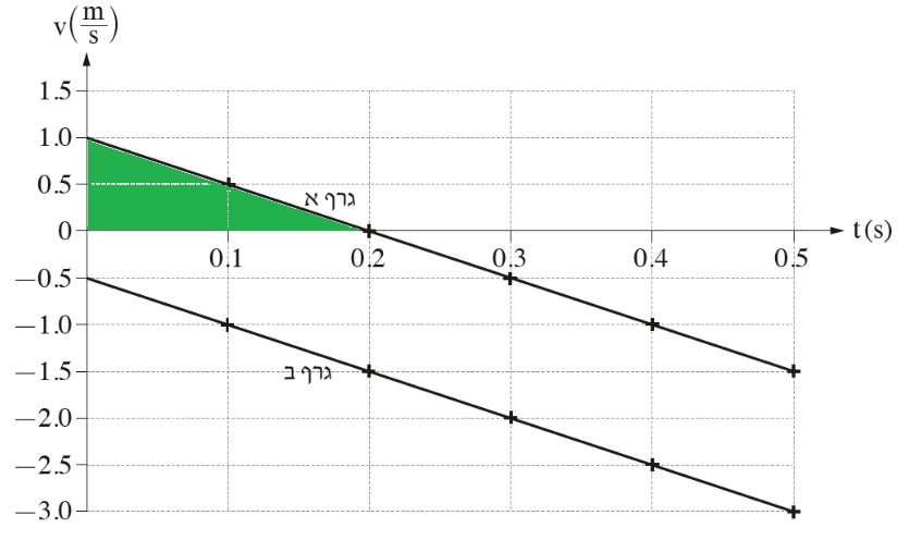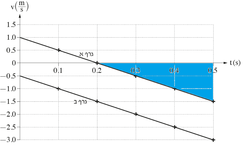 נחשב מרחק זה מהשטח התחום בגרף א' מרגע t=0.2s ועד לרגע t=0.3s: