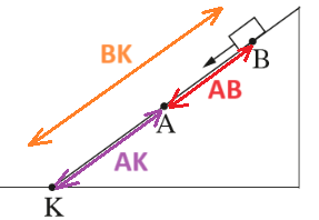 ניתן לחשב את המרחק AK בהתאם למרחקים שהגוף עובר במעלה המישור ובמורד המישור.